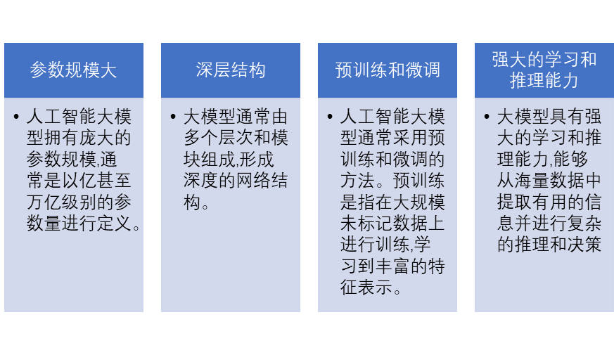 人工智能大模型的主要特征有參數(shù)規(guī)模龐大、深層結(jié)構(gòu)、預(yù)訓(xùn)練和微調(diào)、強(qiáng)大的學(xué)習(xí)和推理能力。