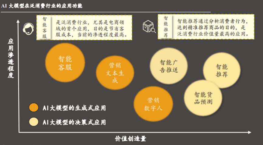 AI 大模型生成式應(yīng)用包含智能客服機(jī)器人、廣告營銷、營銷數(shù)字人等。