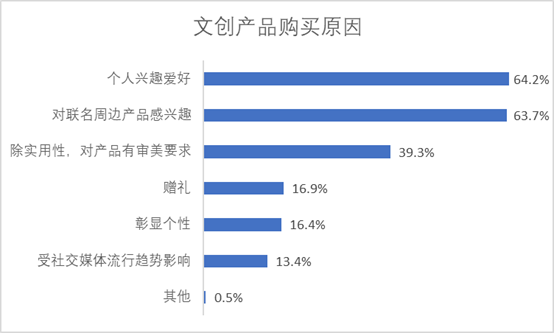 文創(chuàng)產(chǎn)品消費(fèi)主要由消費(fèi)者興趣驅(qū)動(dòng),因此只要有創(chuàng)意,理論上來說萬物皆可+文創(chuàng)。而附加價(jià)值、設(shè)計(jì)感以及紀(jì)念意義是最能促進(jìn)消費(fèi)者購買的三大爽點(diǎn)。